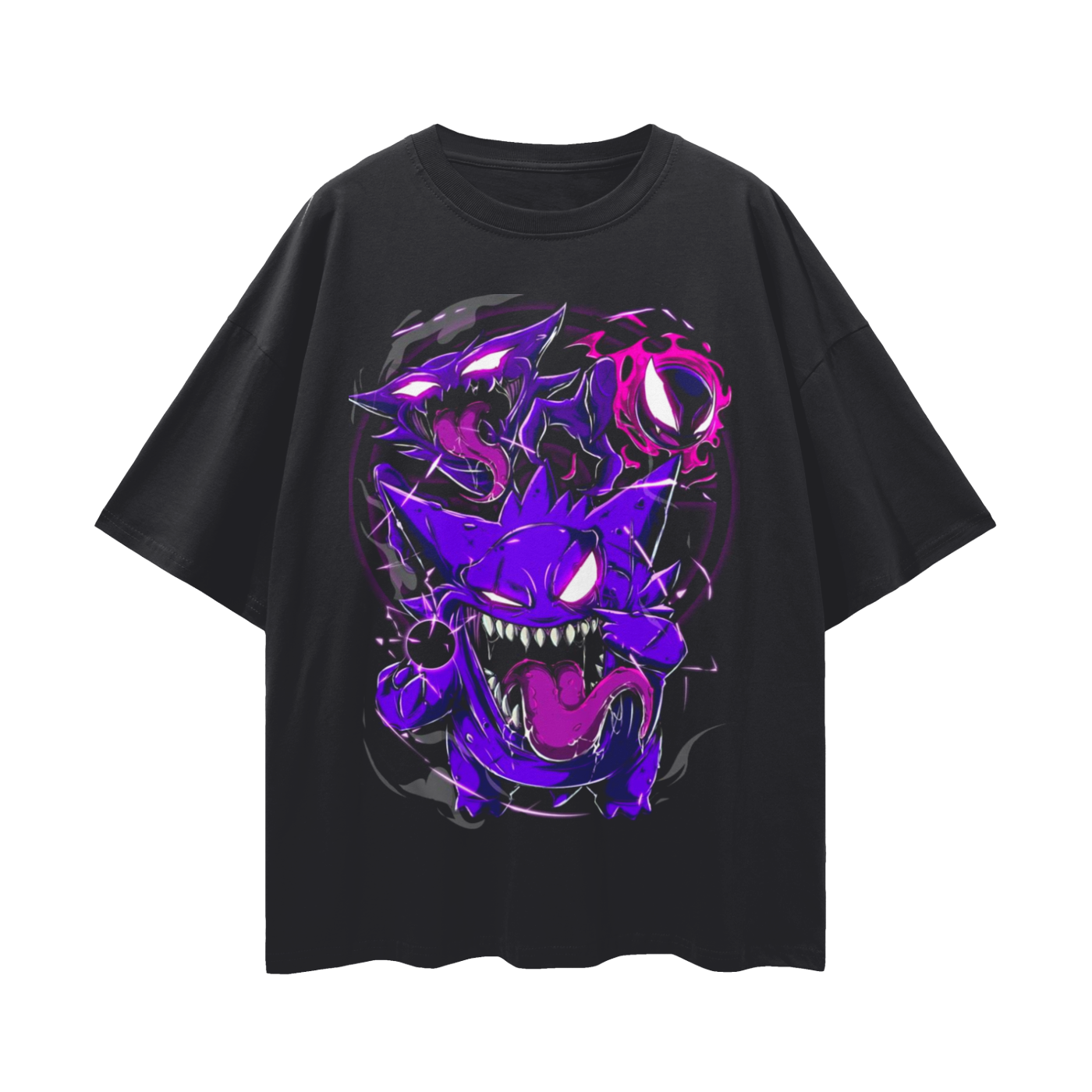 Anime Streetwear - Loose Drop Shoulder - Black T-Shirt